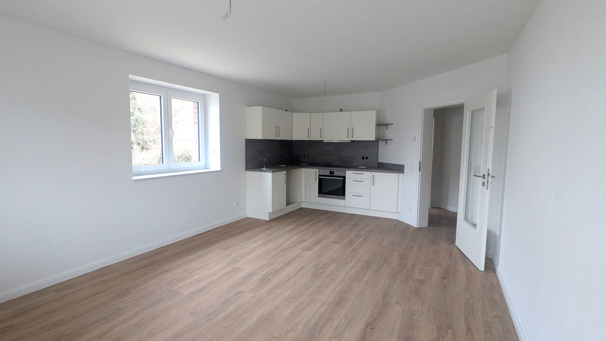 Die Wohnung verfügt über ein großzügiges Wohnzimmer mit offener Küche und drei Schlafzimmer.
