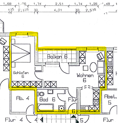 Die Wohnung hat einen Abstellraum, Balkon, die Küche ist mit einer Einbauküche ausgestattet. Im Bad befindet sich eine Badewanne.