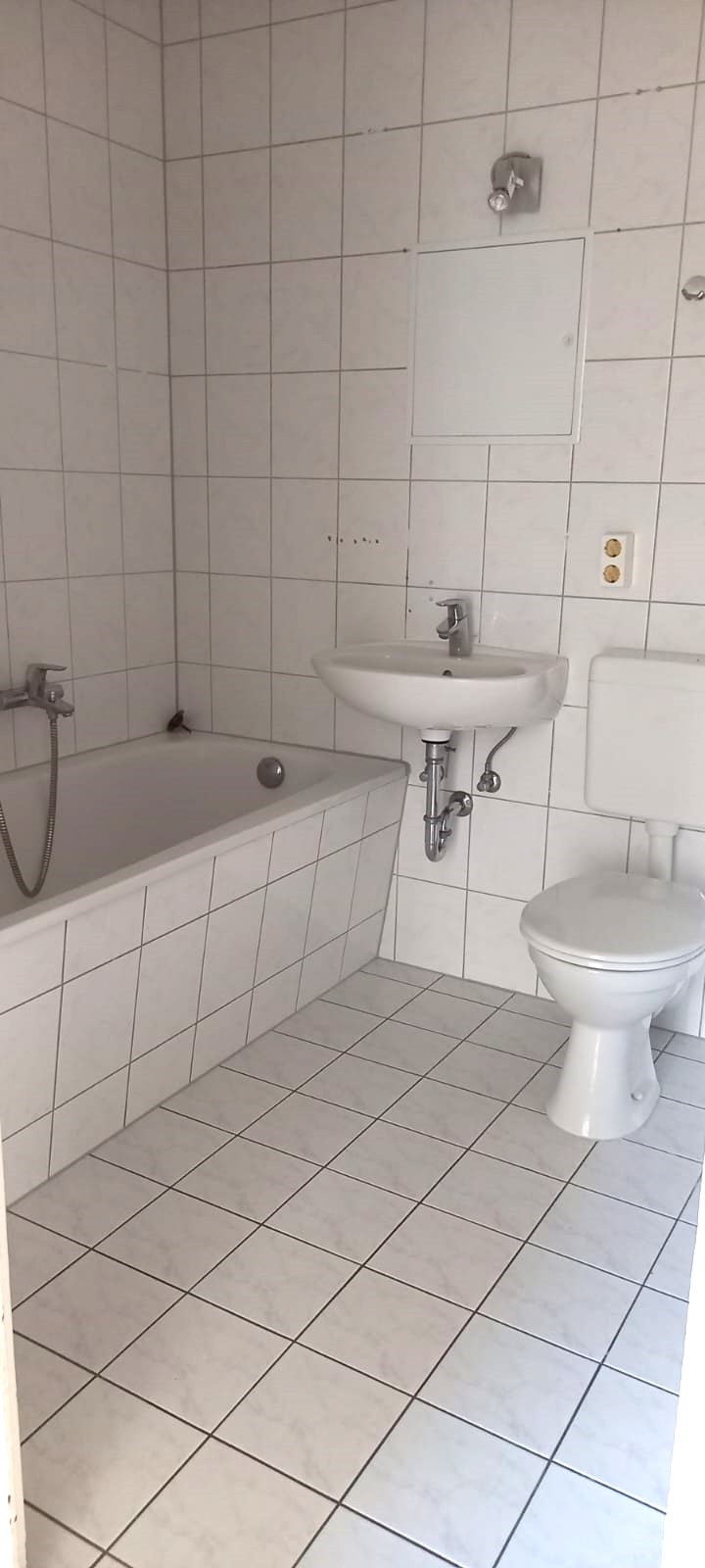 Die Wohnung verfügt über ein gefliestes Bad mit Badewanne, einen Anschluss für Waschmaschine bzw. Geschirrspüler, die Küche ist mit einem Elektroherd ausgestattet.